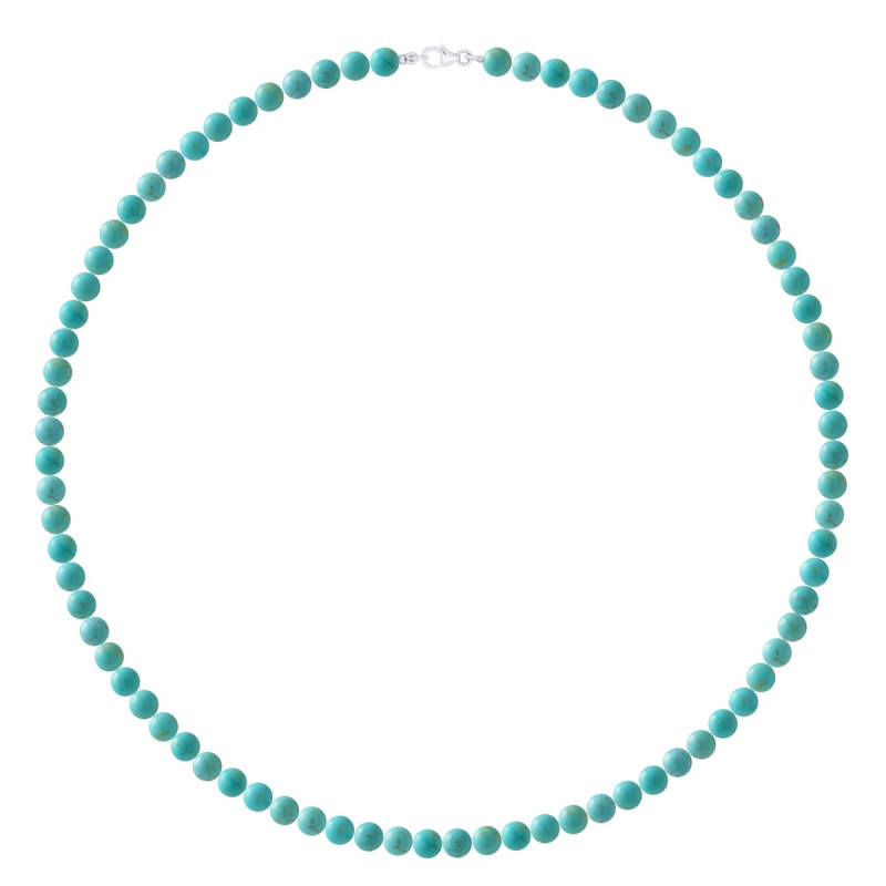 Collier TURQUOISE Ronde 6 mm - Fermoir Mousqueton  - Argent 925 Millièmes - Longueur 50 cm - Livré avec Certificat d'Authenticité et de Garantie Internationale - MANUFACTURE DANS NOS ATELIERS Français