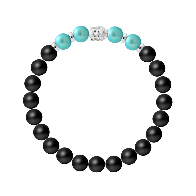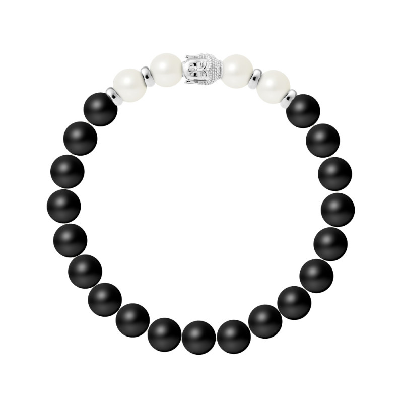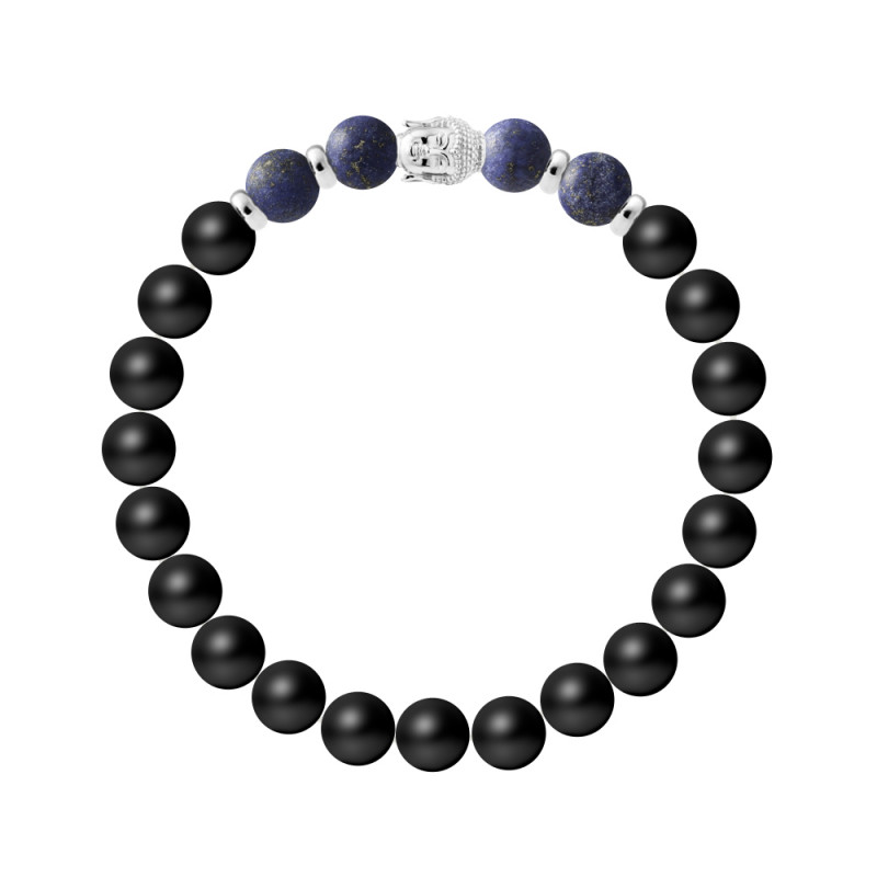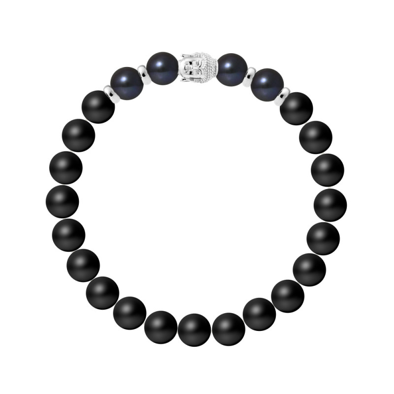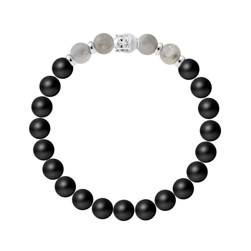 Bracelet BUDDHA | AGATE NOIRE MATTE NATURELLE | Gemmes à sélectionner | Buddha et Viroles Argent Massif 925 Millièmes | Elastiqué - Haute Résistance | Elastiqué - Haute Résistance | Livré sous Ecrin Prestige accompagné de son Certificat d'Authenticité et de Garantie Internationale